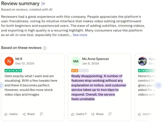 - VEED – Skip it if you have poor internet or prefer mobile apps/offline tools. VEED’s browser-based studio can feel overkill for quick projects, and its richer features come with a steeper learning curve and higher cost (solo creators on a tight budget may favor cheaper alternatives).