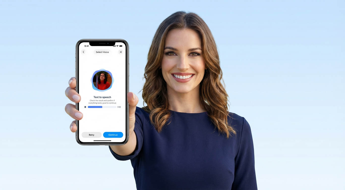 Die KI synchronisiert dann natürliche Lippenbewegungen, Gesichtsausdrücke und Sprachmuster mit Ihrem Skript und erstellt so ein sprechendes Video, das die gleiche Autorität vermittelt, wie Sie es persönlich tun würden. Keine Wiederholungen. Kein Zweifeln an Ihrer Präsentation. Kein Überlegen, ob das Licht ausreicht.
