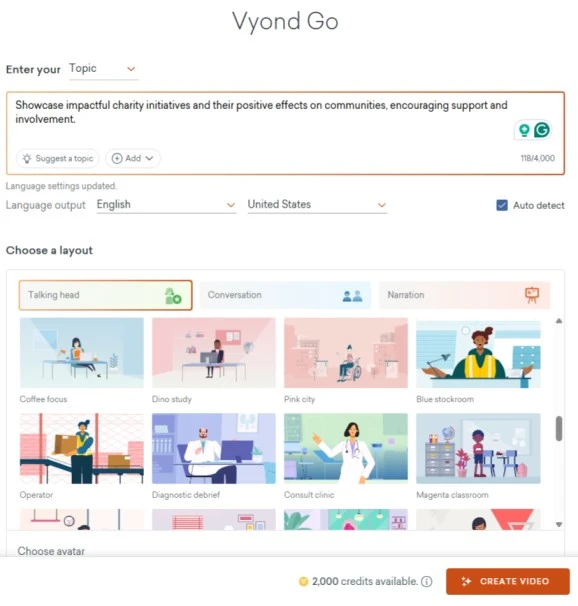 You also get to choose the format: a talking head, a conversation-style scene, or a narration layout.