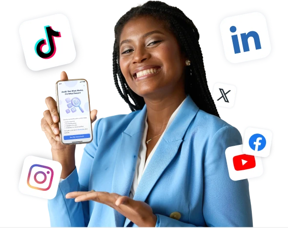 Verbinde deine Social-Media-Konten und erhalte eine klare, personalisierte Analyse darüber, was Engagement erzeugt – und was du als Nächstes tun solltest, mit dem Social Media Audit.